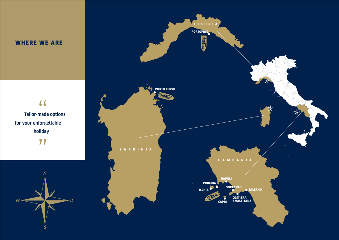 Twenty years of hands-on experience mean you can rely on a trustworthy company that boasts extensive knowledge of the region. Our strong points, where we have developed and invested over the years, is certainly the logistics part with an active presence through three offices located in the most important marinas (Naples Marina di Stabia, Capri Marina Grande, Marina di Arechi - Salerno Amalfi Coast).Passion